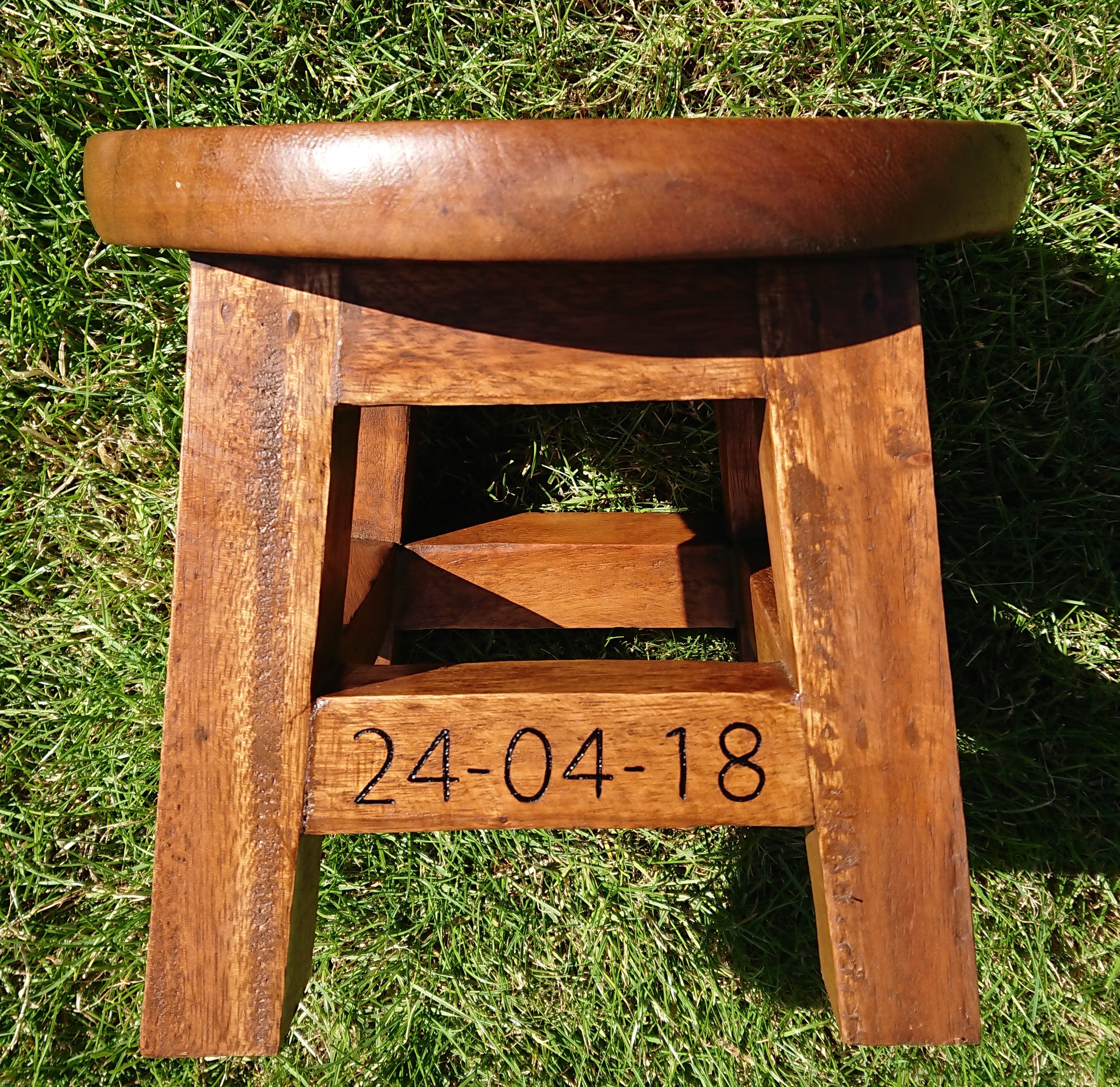 Ideal to give as a quirky and original New Baby, Christening or Birthday gift, this delightful solid and robust stool has been hand crafted by skilled artisans using the finest quality 'Monkey Pod' wood.