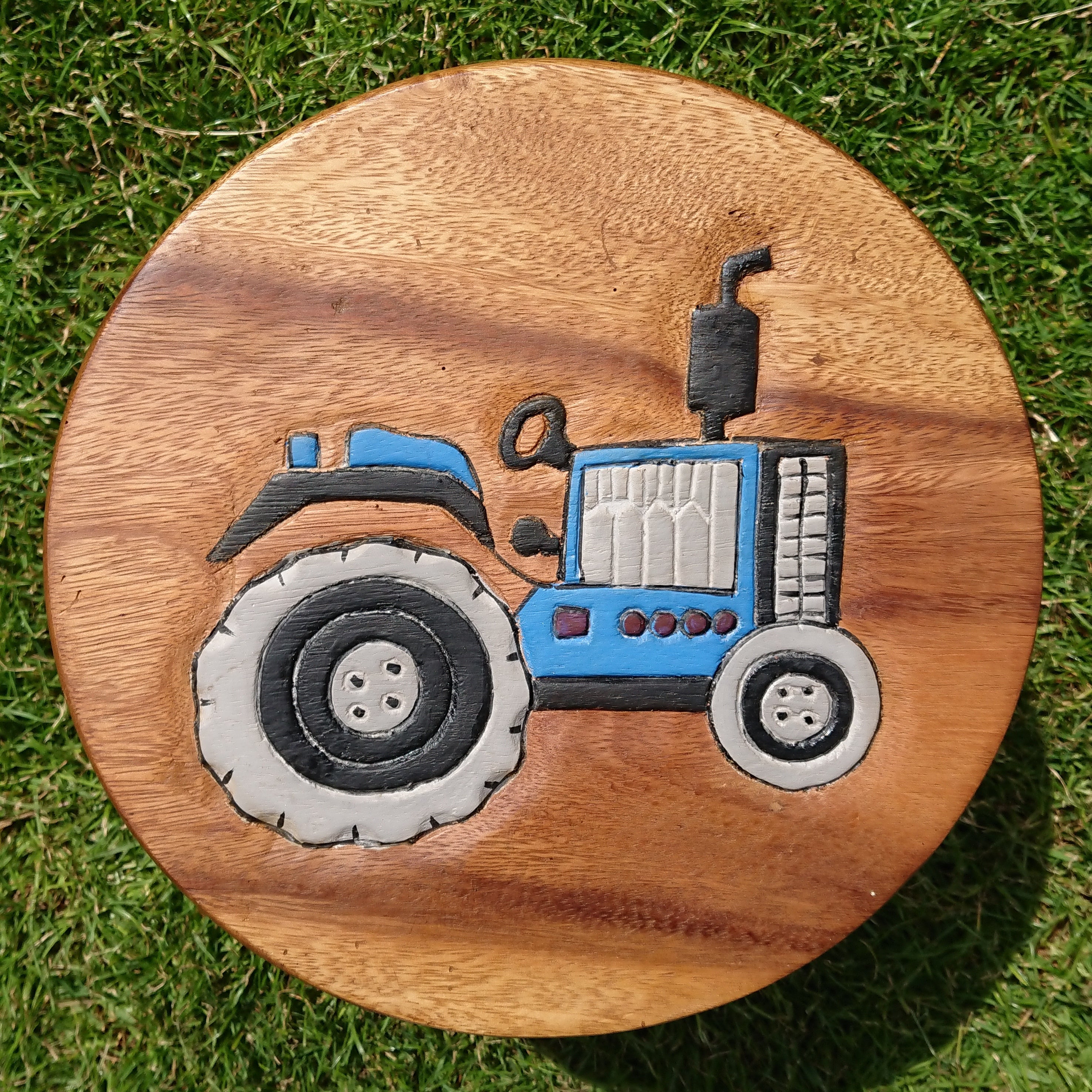 Each design is beautifully carved into the stool surface and hand painted using non-toxic paints. The stools are then stained and waxed, bringing out the beautiful wood grain.